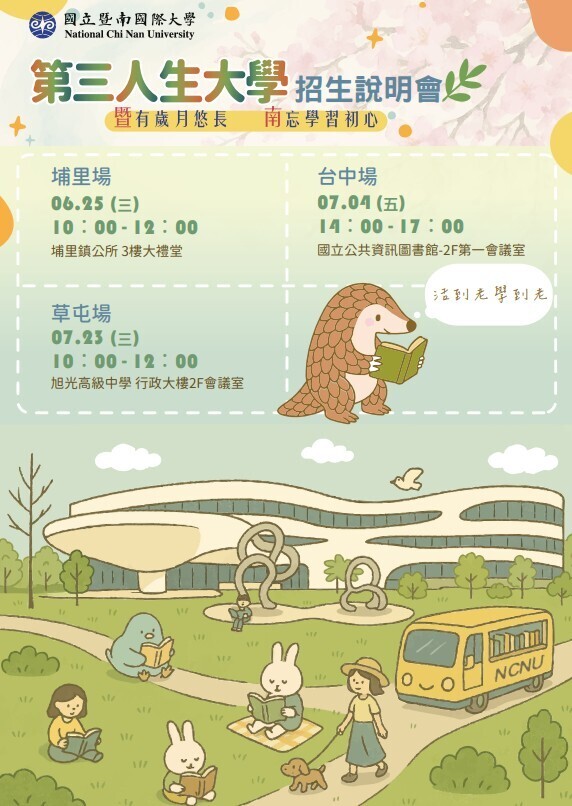 國立暨南國際大學配合教育部「第三人生大學試辦計畫」,舉辦三場招生說明會,邀請您一起了解課程特色與報名方式!