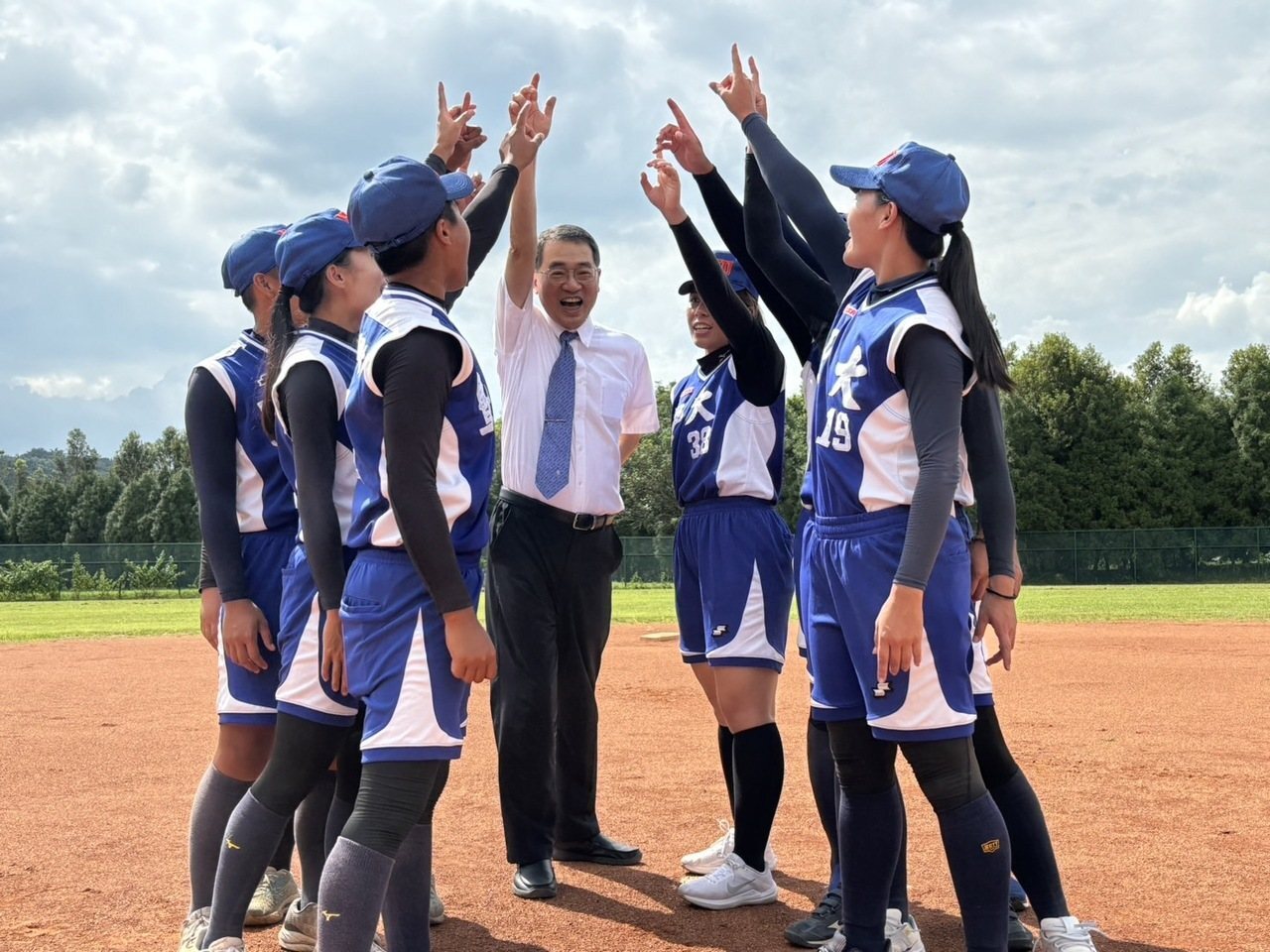 暨大校長武東星出席該校女壘隊打氣。 暨大/提供。