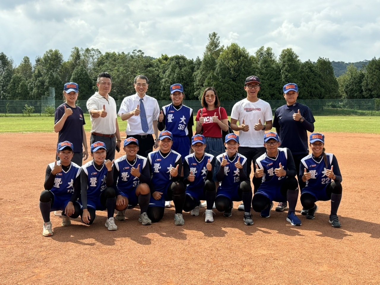 香港學生劉雪汶加盟該校女壘隊,師生合影。 暨大/提供。