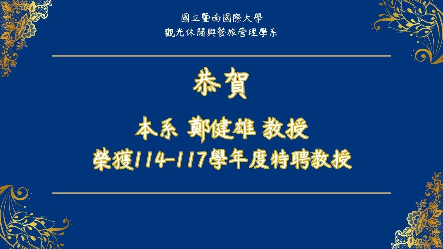恭賀本系鄭健雄教授榮獲114-117學年度特聘教授