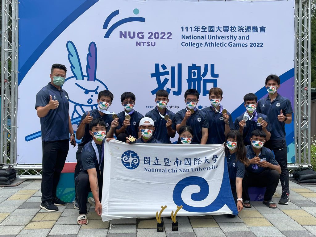 111年全國大專校院運動會111.5.7~5.11在國立體育大學舉辦,暨大划船隊表現亮眼,自去年11月份起即投入集訓,展現團隊戰力,拿下總成績6金2銀1銅佳績,並獲得划船男子組及女子組團隊雙料總冠軍殊榮。
