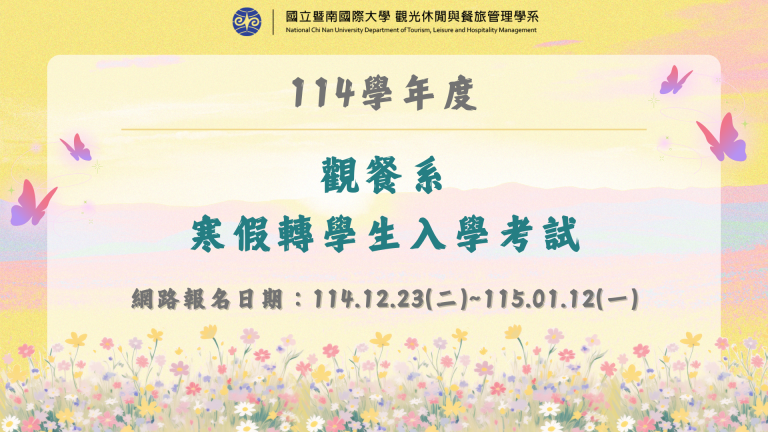114學年度觀餐系第二學期【學士班】轉系口試時間表與注意事項